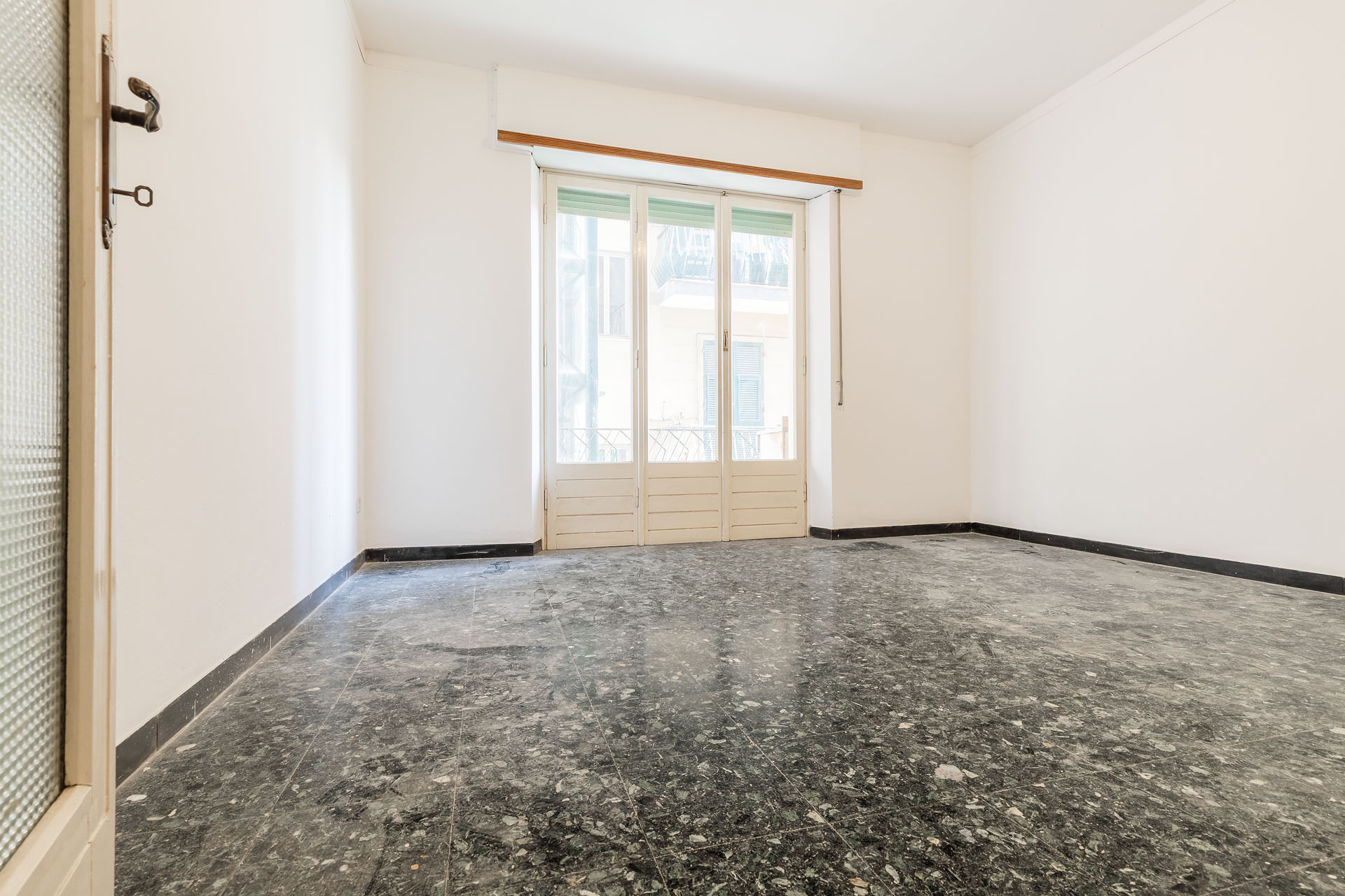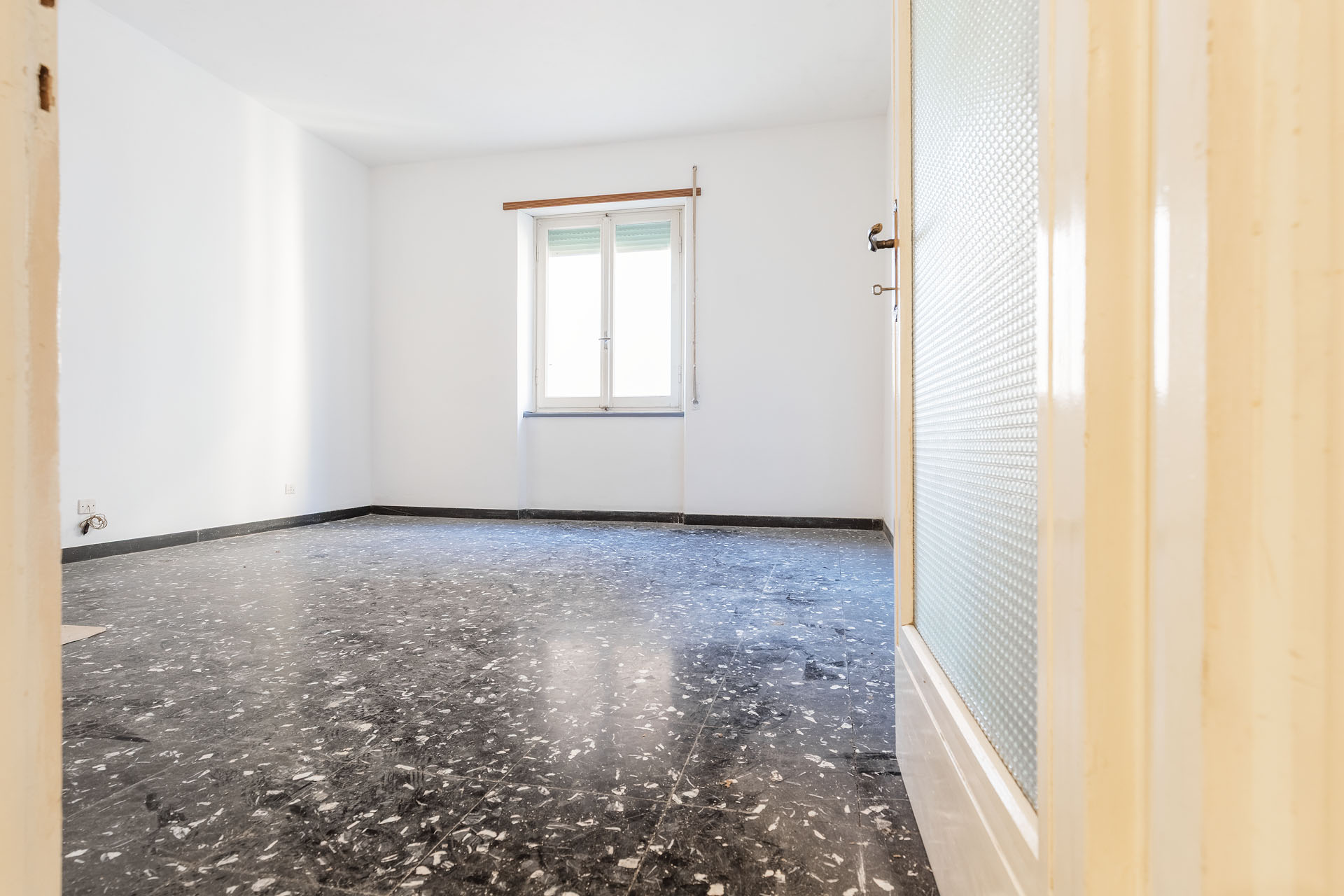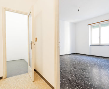 Salotto e cucina si possono facilmente unire eliminando una sola parete, andando così a creare una grande zona living con due ampie porte finestre affacciate sul balcone; le due camere da letto invece sono entrambe abbondanti e hanno tutto lo spazio necessario per poter realizzare il secondo bagno.