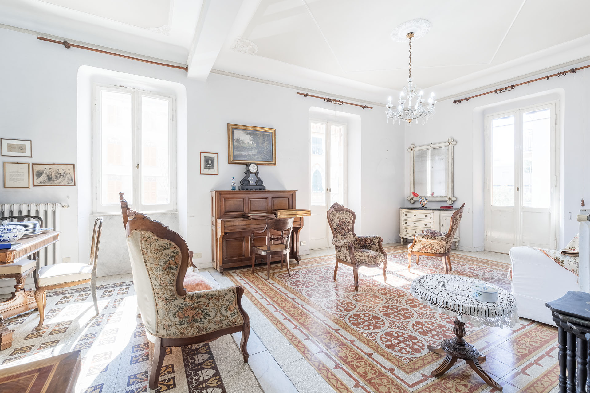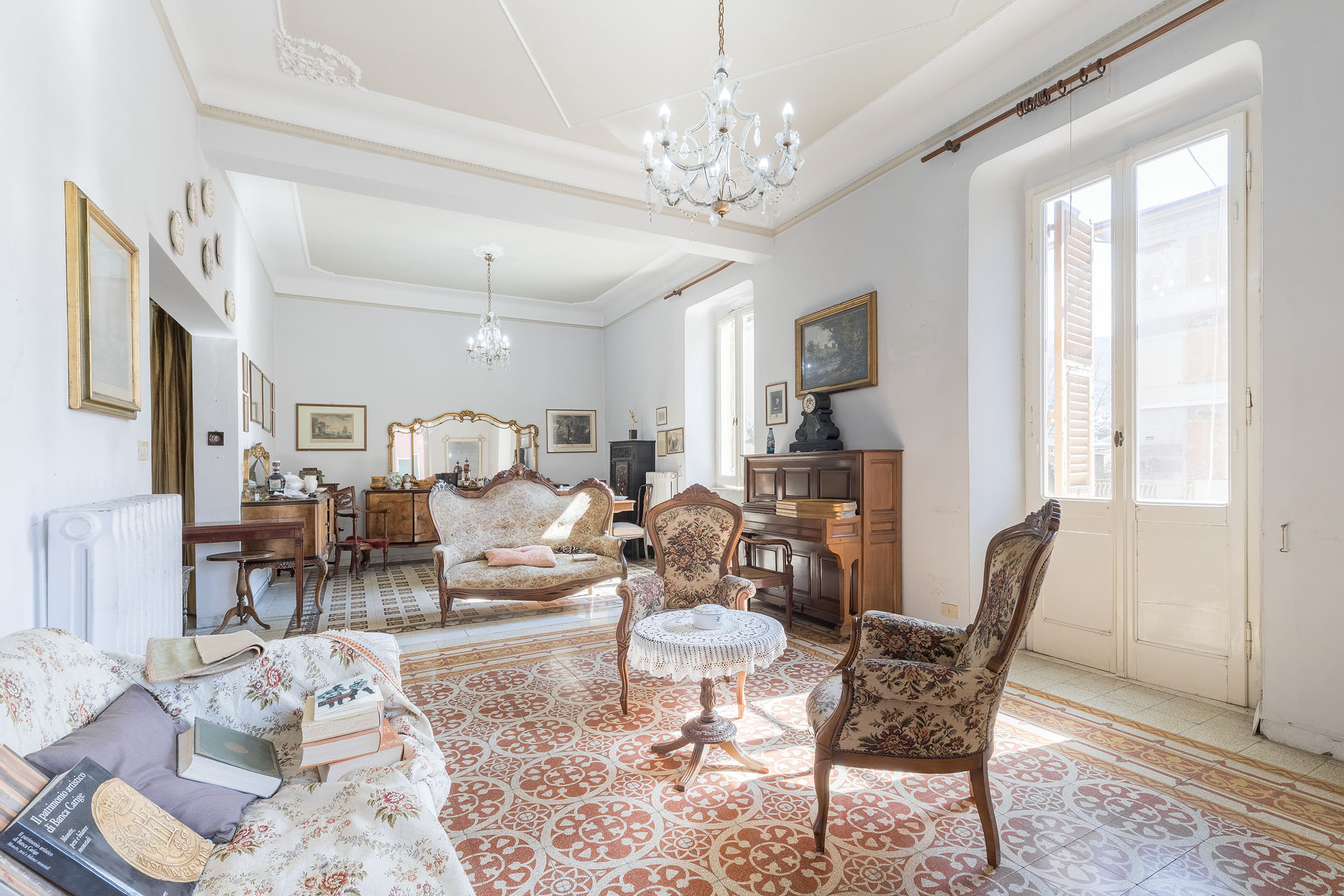 • salone doppio con quattro finestre e due balconi;