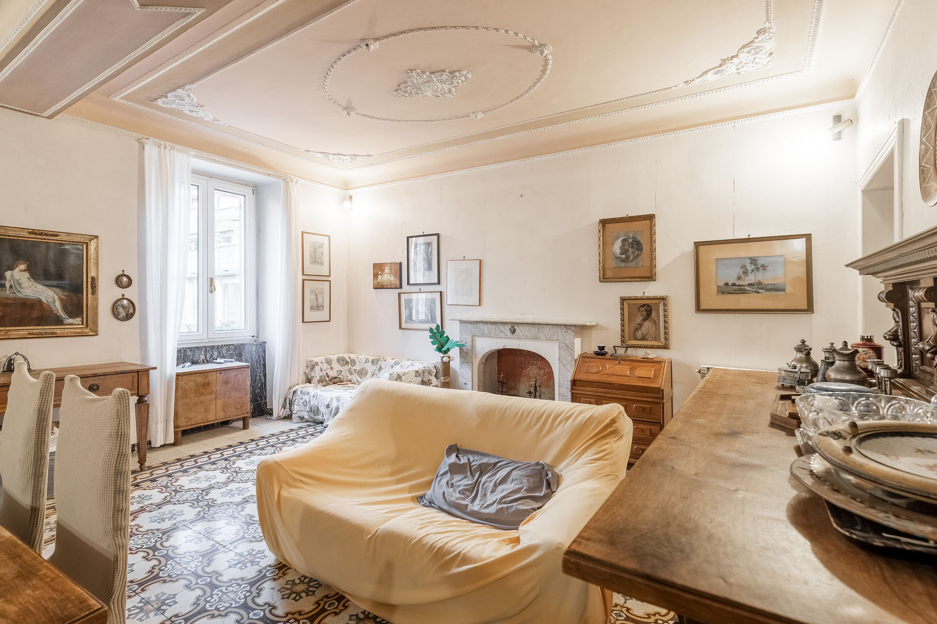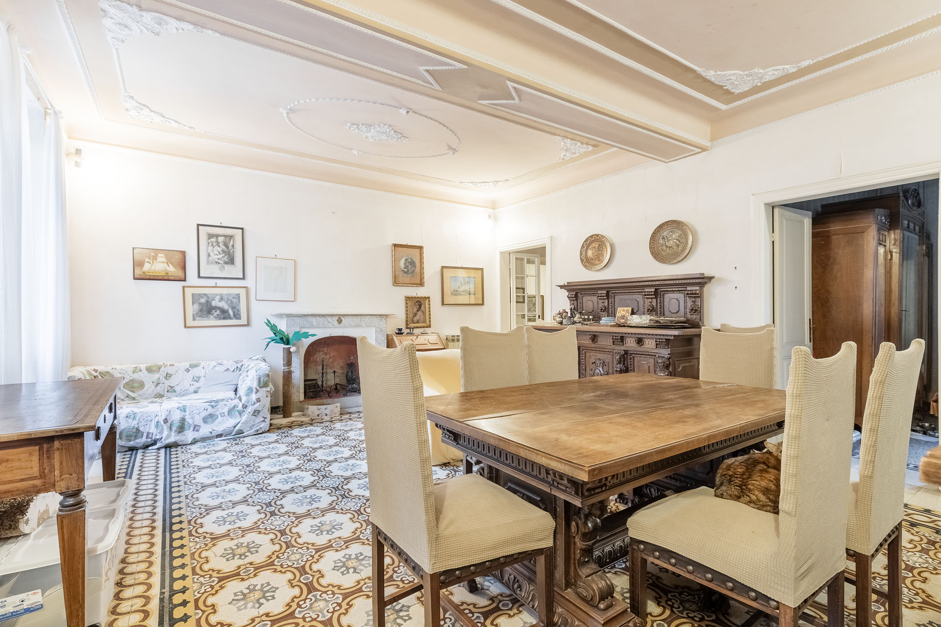 - Salotto principale con caminetto e con due piccoli vani di servizio nascosti a parete;