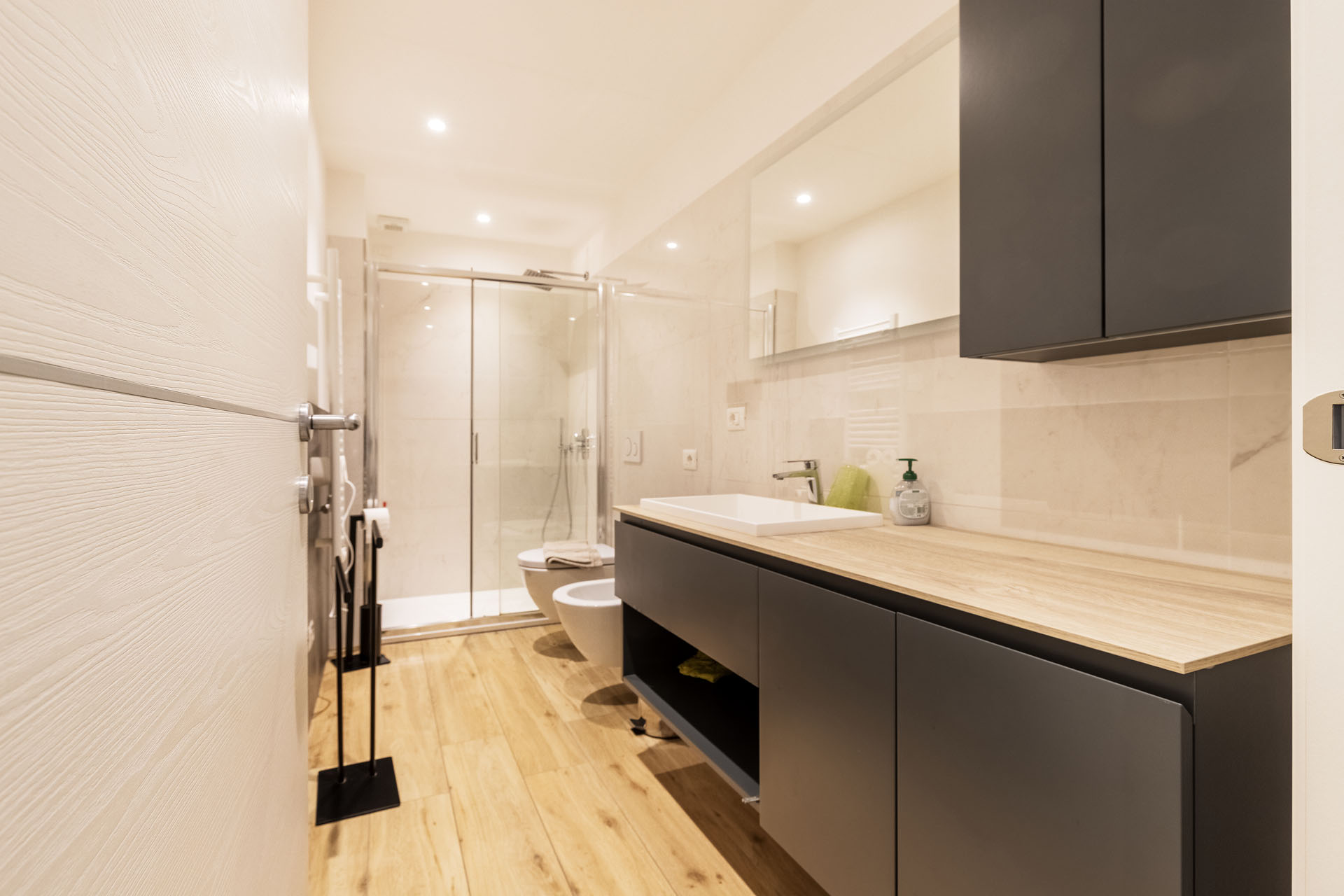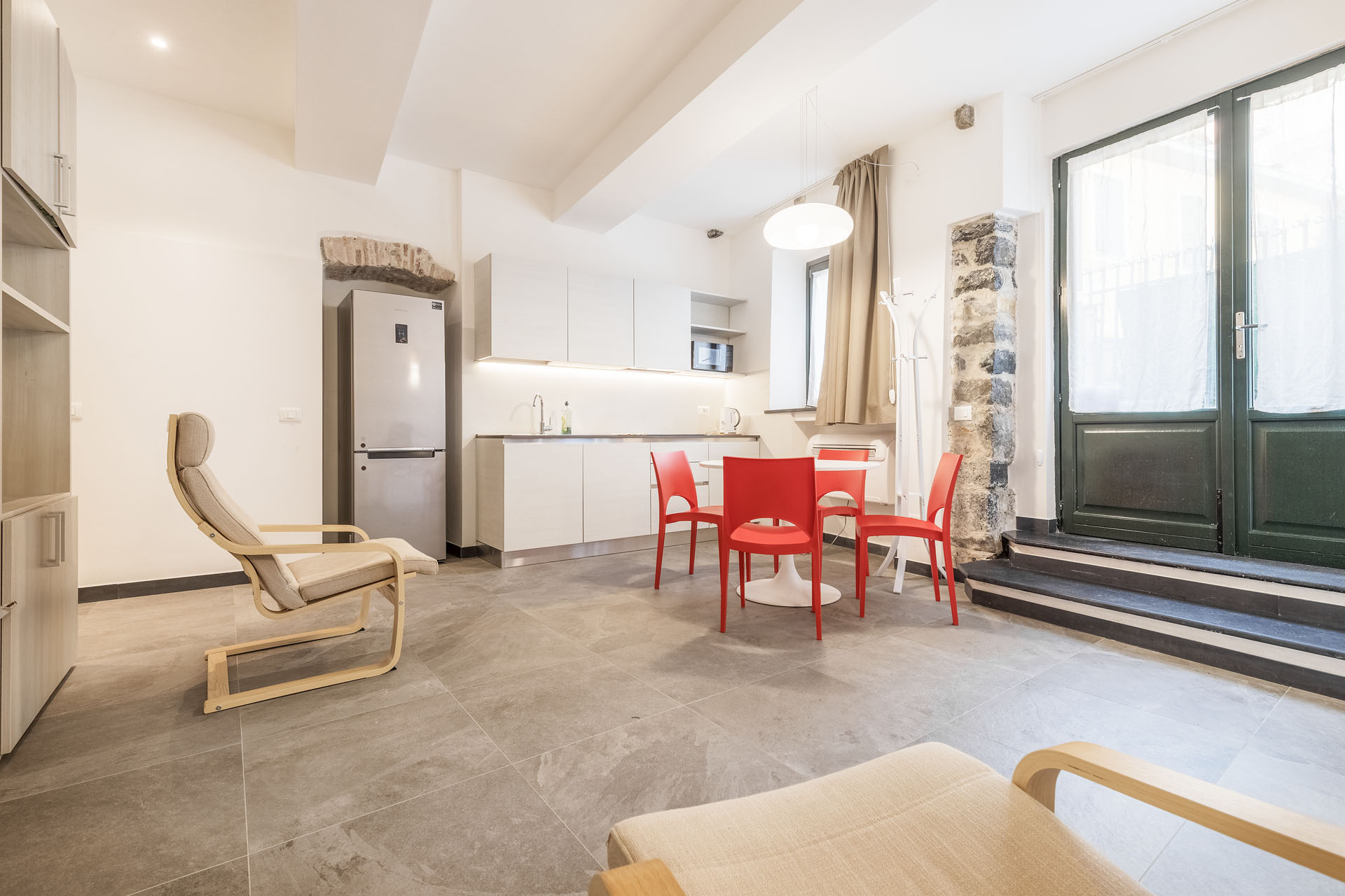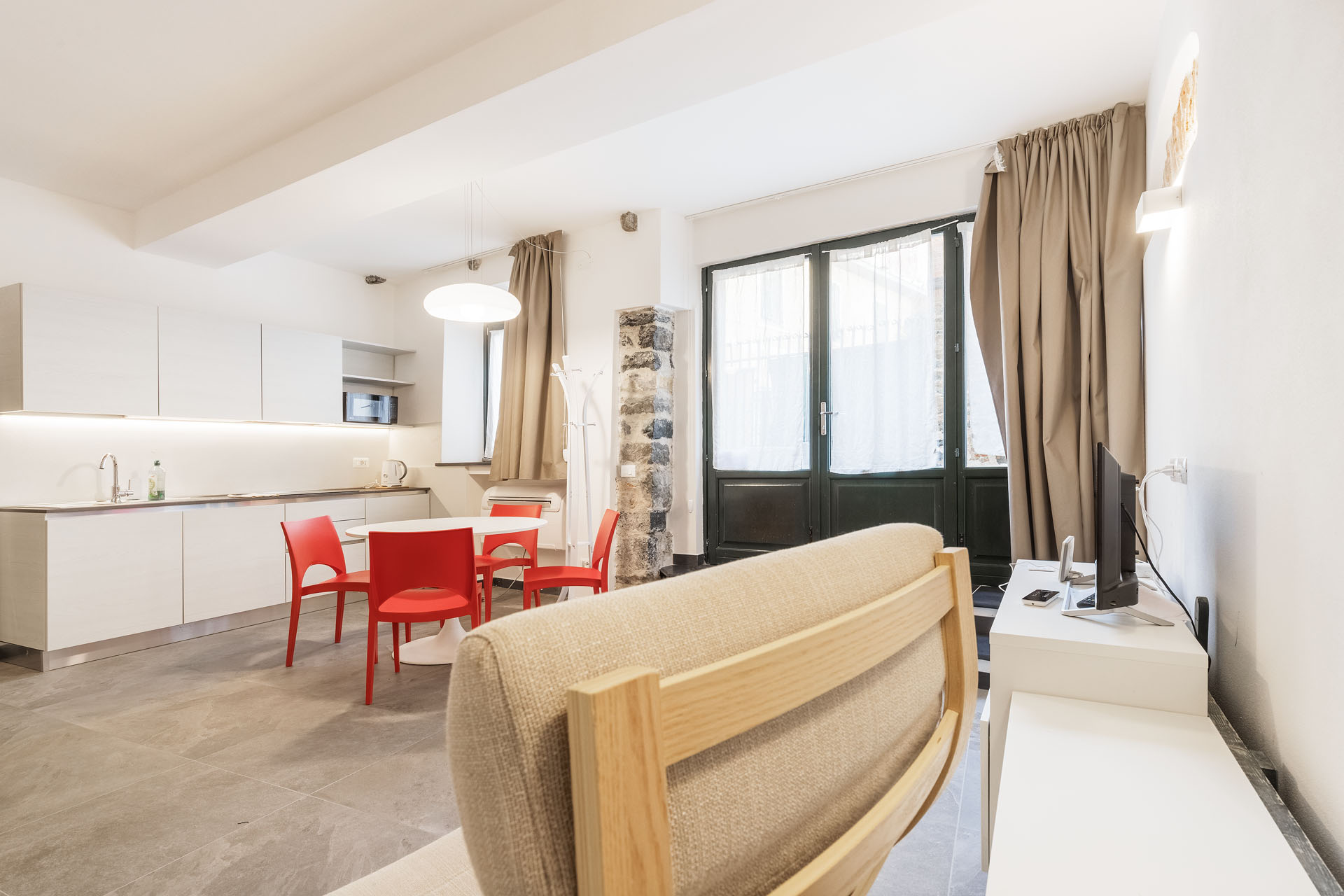 In questo meraviglioso contesto proponiamo l’acquisto di un appartamento di notevole pregio, organizzato ad “open space” e completamente ristrutturato in ogni sua parte, ben studiato in ogni particolare e sviluppato su un unico piano per una metratura commerciale di 46mq, dotato sia di un ingresso indipendente, sia di un ingresso dall’androne condominiale. Gli ambienti interni vedono un grande spazio living illuminato da un’ampia porta finestra a tre ante con l’angolo cottura ben inserito lungo la parete, un disimpegno che porta al comodo bagno e al retro dell’appartamento, dove sono ubicati sia l’ingresso condominiale sia una zona ripostiglio.