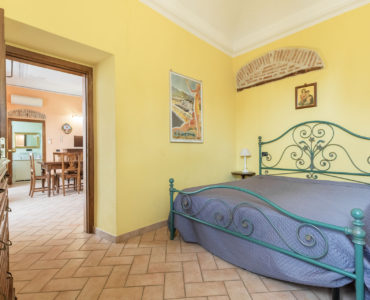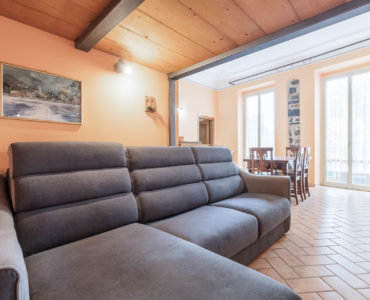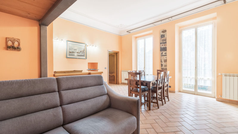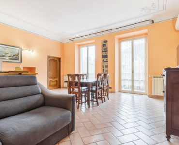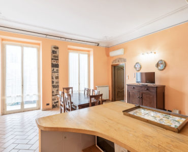 Il living ha due ampie porte finestre affacciate direttamente sul balcone di proprietà, uno dei pochi balconi della Levanto medioevale, che offre un’incantevole vista sui caratteristici caruggi e su importanti monumenti come Palazzo Restani e la chiesa di Sant’Andrea.