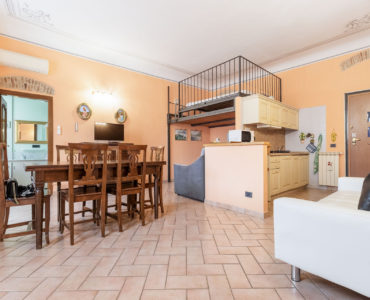 - l’ingresso sull’ampia zona living, dotata di angolo cottura e di un soppalco arredato come “zona notte supplementare”;
