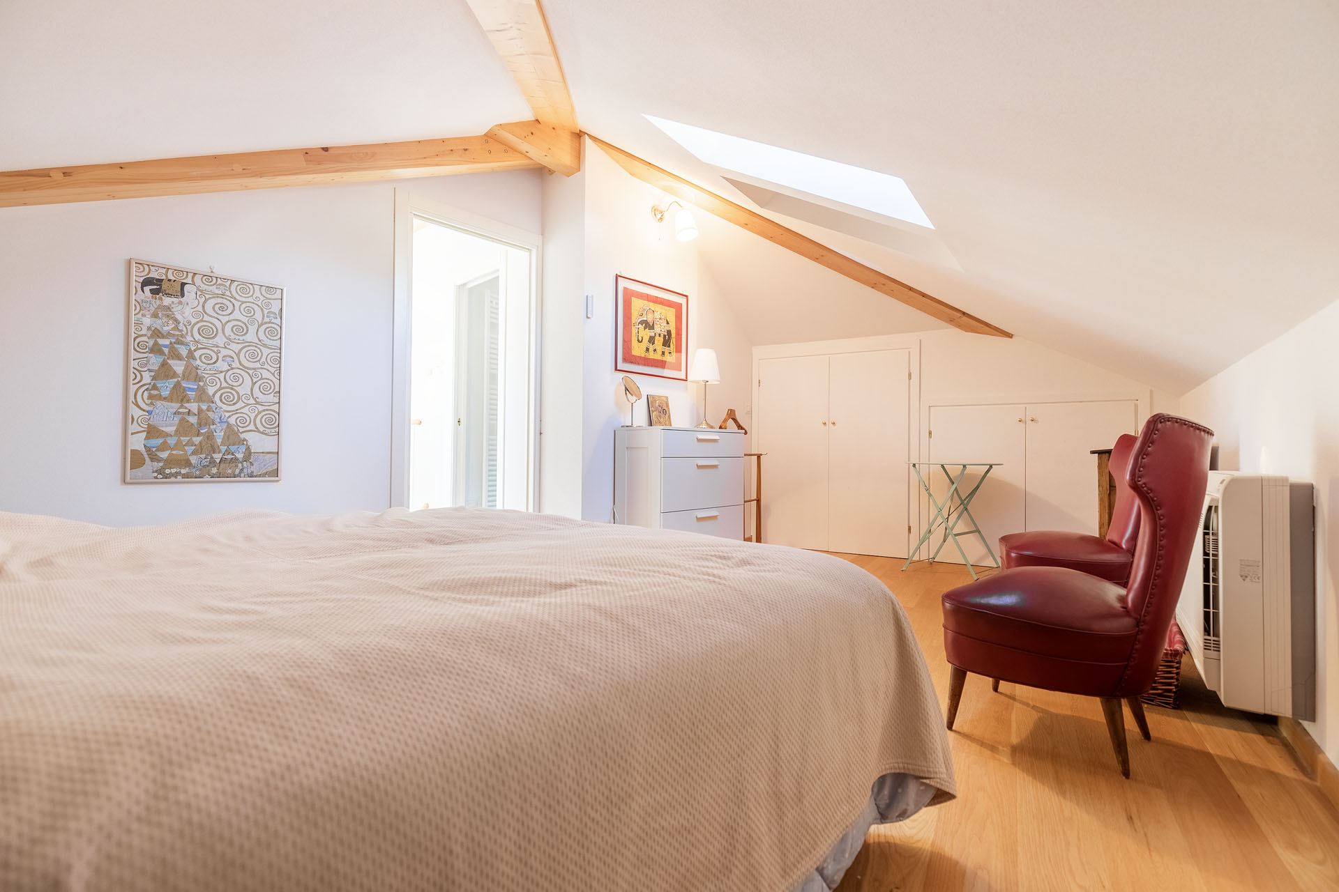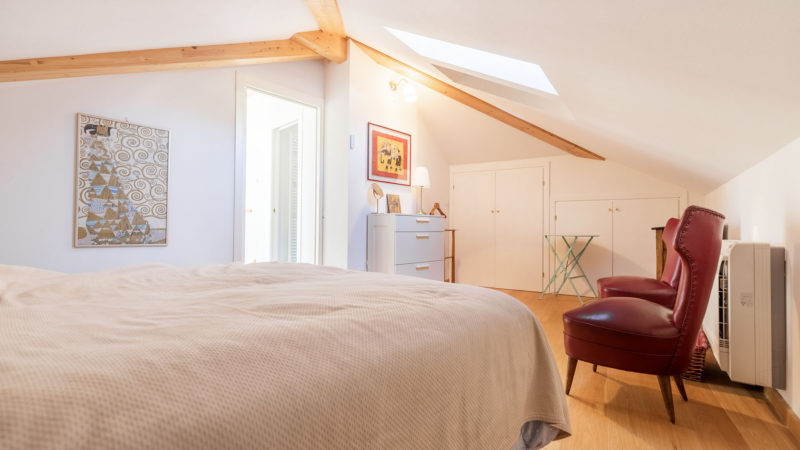 - L’intero piano secondo della casa con ampie finestre aperte su tutti e quattro i lati e una divisione interna che vede un angolo cottura con sala da pranzo, un salotto, una camera da letto matrimoniale e un bagno completo di finestra;